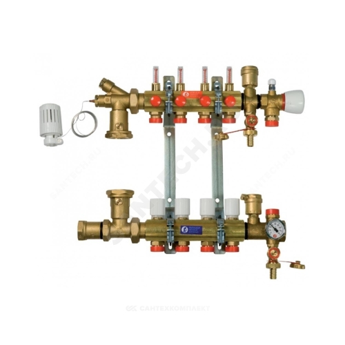 Группа коллекторная латунь R557F 1" ВР/ВР 4 вых 3/4" НР под евроконус с расходомерами Giacomini R557FY104
