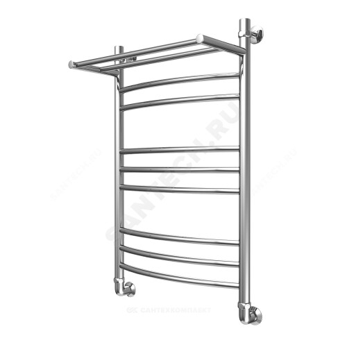 Полотенцесушитель электрический нерж сталь Лесенка с полочкой 500х800мм 5П ТЭН справа Уют Элит-Металл Э-23-08