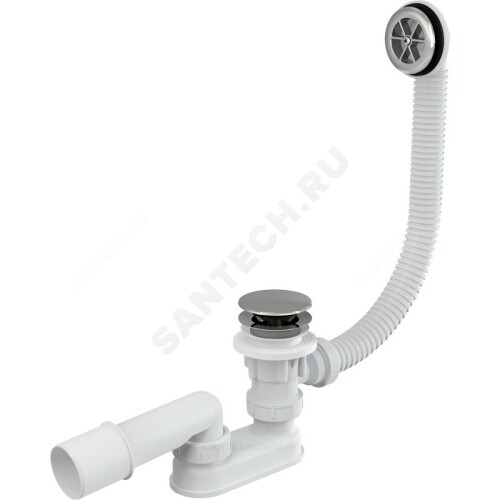 Слив-перелив для ванны плоский автоматический с переходной трубкой 10гр. 40/50 слив клапан "клик-клак", пробка D=70мм Alca Plast A505CRM