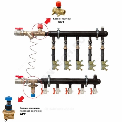 Узел коллекторный этажный латунь (подача) для учёта расхода ТЭ GE550-3 3 вых 1 1/4"x3/4" в/к проставки для насоса Giacomini GE550Y115